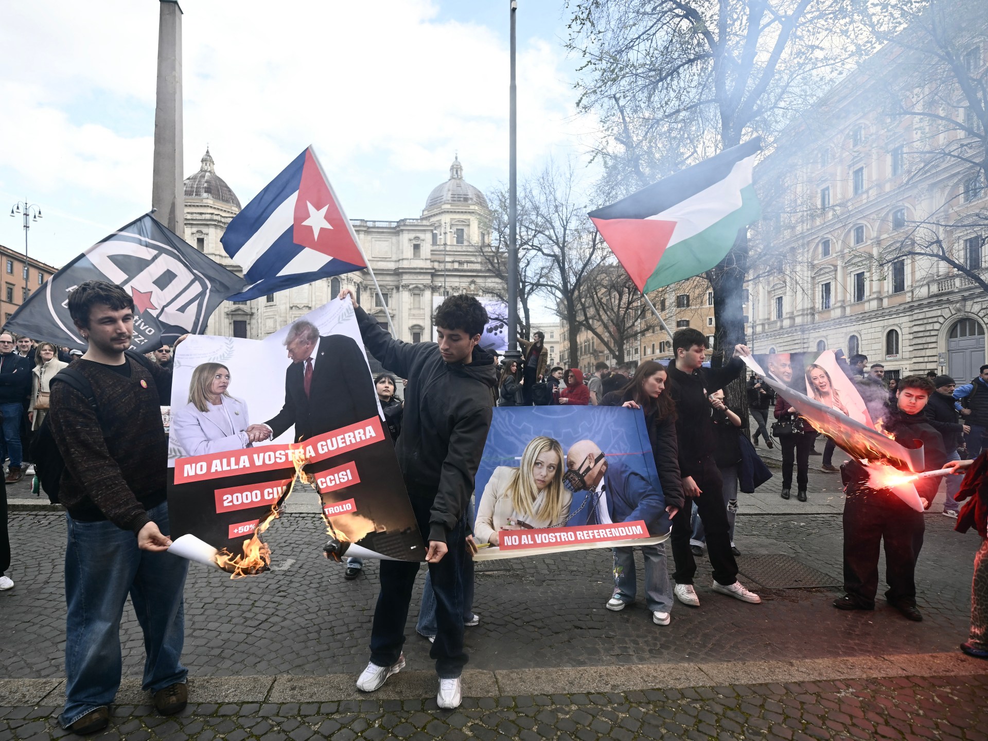 مظاهرة في روما تشعل الغضب بحرق صور ترمب وميلوني احتجاجاً على السياسات الحكومية والحرب