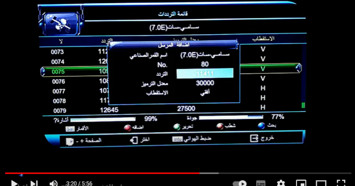 أما تردد القناة على القمر الصناعي عربسات فهو: