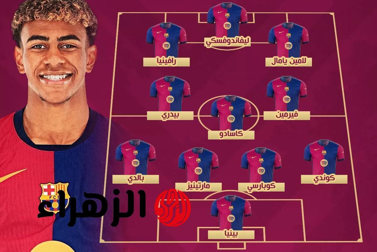 - الوسط الهجومي: لامين يامال – داني أولمو – ماركوس راشفورد.