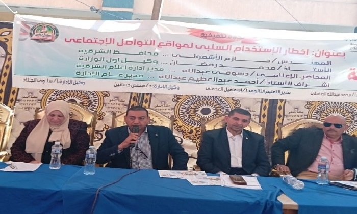 عقدت إدارة إعلام الشرقية ندوة بعنوان “أخطار الاستخدام السيء لمواقع التواصل الاجتماعي” في مدرسة ربيع فلاح الثانوية بنات بمركز ديرب نجم.