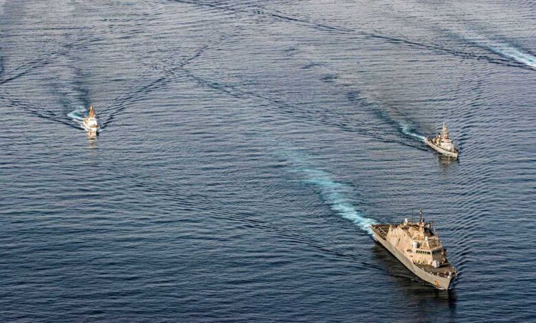 - في هذا التوقيت، تتحرك المدمرات الأميركية والسفن الحربية لتوفير غطاء دفاعي جوي وصاروخي، مستخدمة أنظمة رادار وصواريخ متقدمة للحماية من التهديدات المحتملة من الحرس الثوري الإيراني.