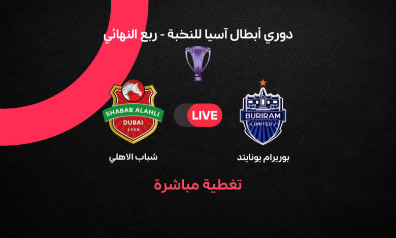 مباشر مباراة شباب الأهلي ضد بوريرام في ربع نهائي دوري أبطال آسيا للنخبة لموسم 2025-2026، والتي تحمل أهمية خاصة باعتبارها عودة الفريق الإماراتي إلى هذا الدور المتقدم من المسابقة القارية بعد غياب لعدة سنوات.