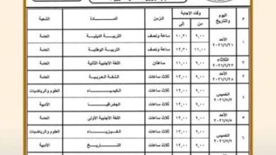 جدول امتحانات الفصل الثاني للعام الدراسي 2026 في مدارس المنوفية