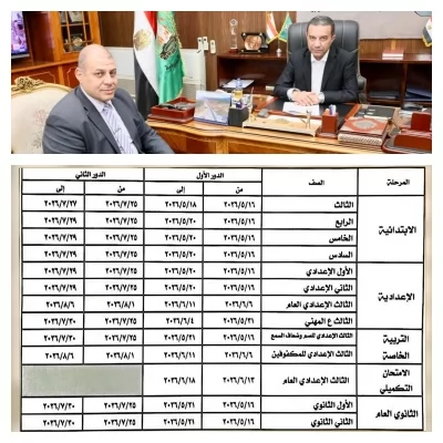 محافظ المنوفية يحدد مواعيد اختبارات نهاية العام الدراسي في مايو 2026