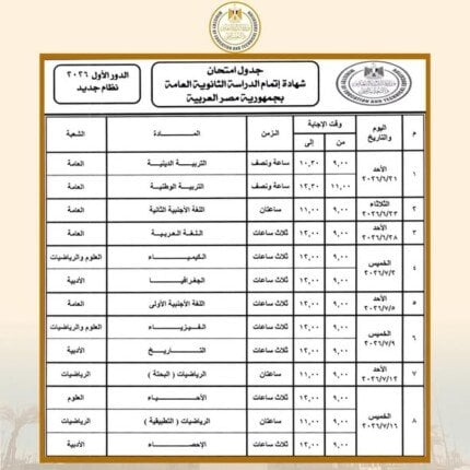 مواعيد امتحانات الدور الأول للثانوية العامة