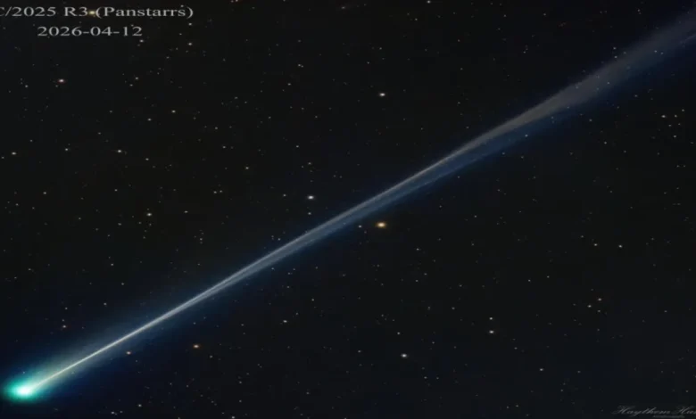 اختارت وكالة الفضاء الأمريكية (ناسا) صورة فلكية التقطها أحد أعضاء الجمعية الفلكية الأردنية لتكون ضمن أجمل صور المذنب “بان-ستارز” C/2025 R3. تم رصد المذنب من مدينة شارلستون في ولاية رود آيلاند الأمريكية، حيث استغرق التصوير حوالي 29 دقيقة.