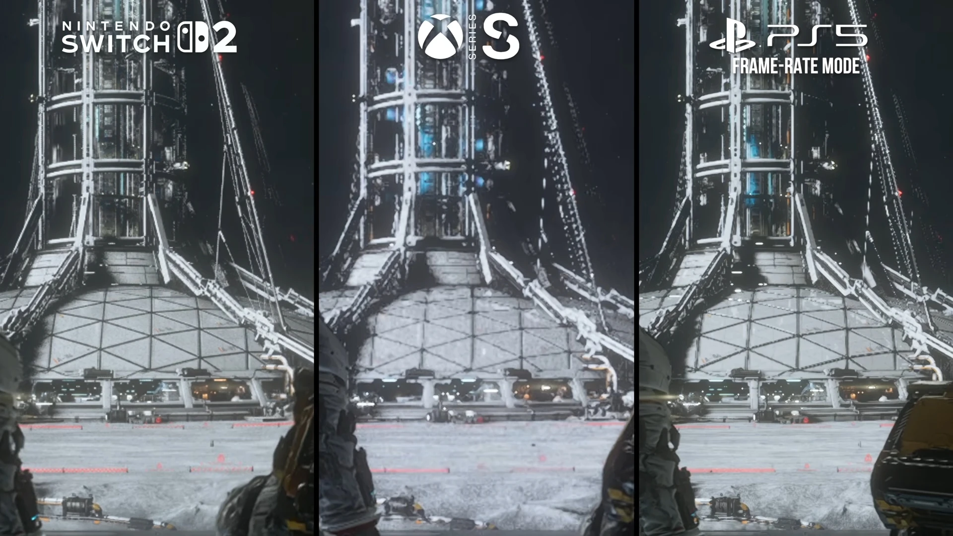 بالنظر إلى دقة العرض، نجد أن Switch 2 تعامَل مع الصورة بطريقة أكثر كفاءة. بينما اعتمد Xbox Series S على دقة داخلية منخفضة نسبيًا، وصلت في بعض الأحيان إلى 720p، مما جعل الحواف أقل وضوحًا وتفاصيل الصورة أكثر غموضًا.