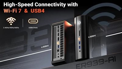 يوفر Minix ER939 مجموعة متعددة من منافذ الاتصال، تشمل USB4 وUSB 3.2 Gen 2، بالإضافة إلى HDMI 2.1 وDisplayPort 1.4 لتوصيل الشاشات بدقة عالية. كما يدعم الجهاز الاتصال اللاسلكي عبر Wi-Fi 7 وBluetooth 5.4، إلى جانب منفذ شبكة سلكية بسرعة 2.5G Ethernet لضمان اتصال سريع ومستقر.