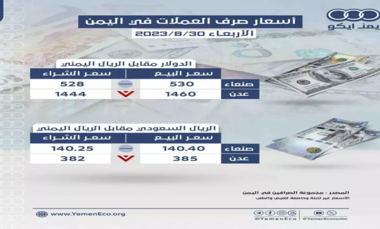 | الدولار الأميركي (شراء: 1558 – بيع: 1582 ريال) | الدولار الأميركي (شراء: 535 – بيع: 540 ريال) |