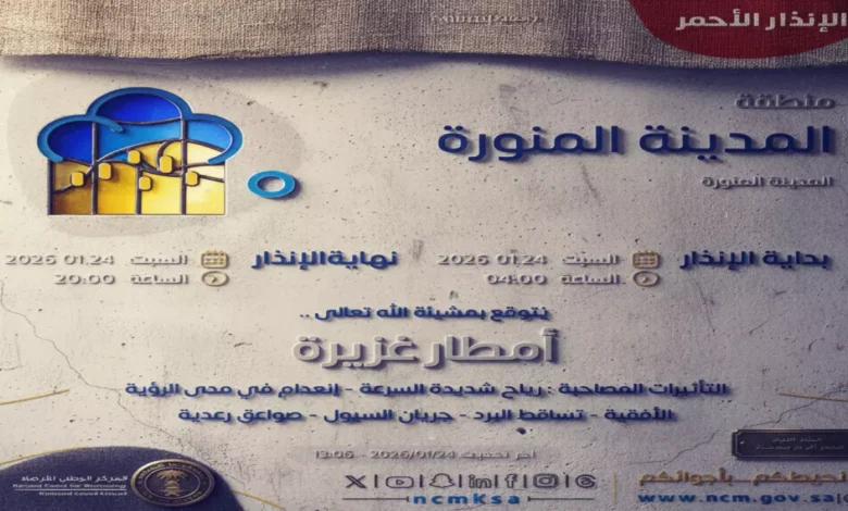 أمطار غزيرة تسيطر على المدينة المنورة واهتمام كبير من السكان