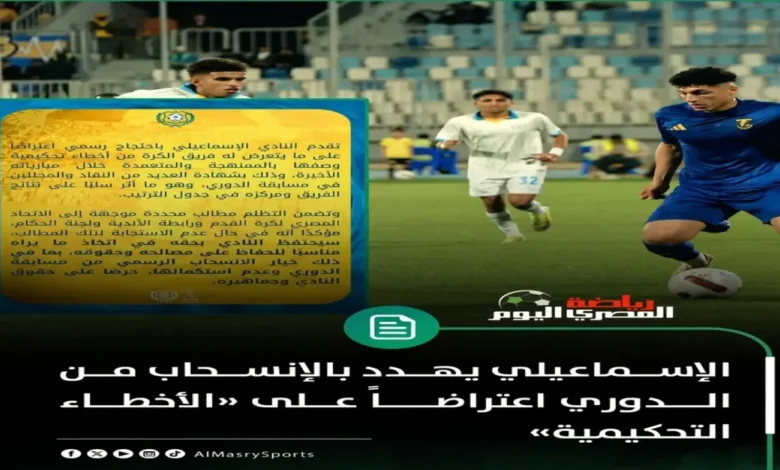 أصدر النادي الإسماعيلي إنذارًا رسميًا بشأن انسحابه من الدوري المصري الممتاز، متهمًا التحكيم بارتكاب “أخطاء ممنهجة ومتعمّدة” أدّت إلى تدهور وضع الفريق، مما يهدده بالهبوط مباشرة.